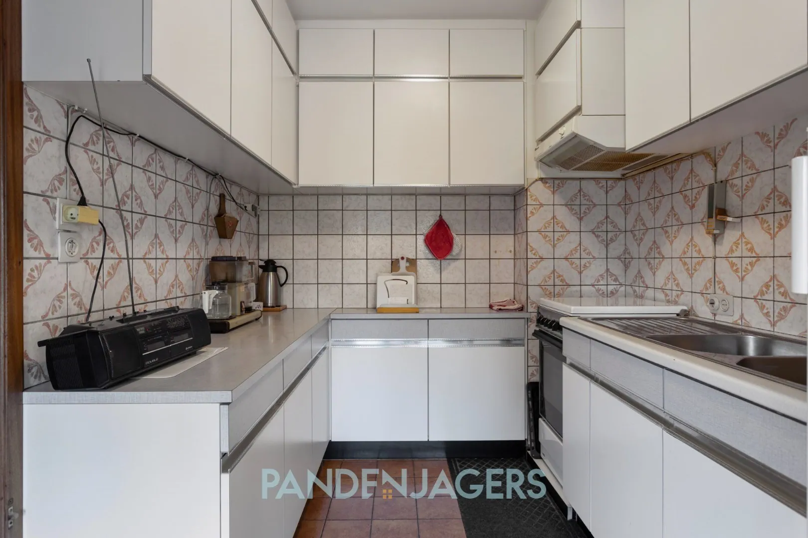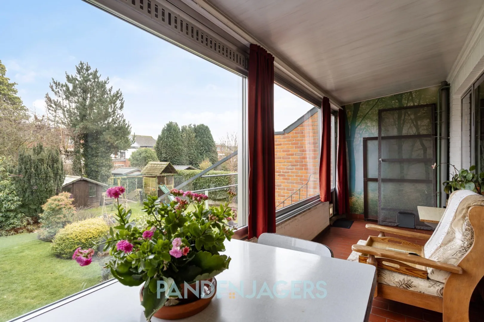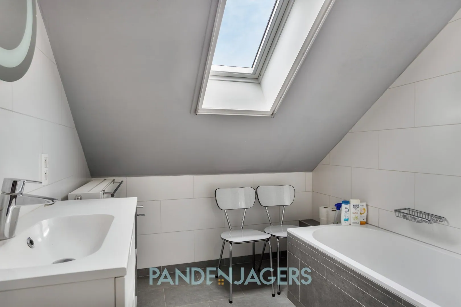 Op de eerste verdieping is er een ruime woonkamer voorzien en de op te frissen keuken. Achterliggend is er een lichtrijke veranda met trap richting de tuin. Op de tweede verdieping zijn er 3 slaapkamers, waarvan 1 kleine kinder- of babykamer. De badkamer werd zo’n 4 jaar terug vernieuwd.