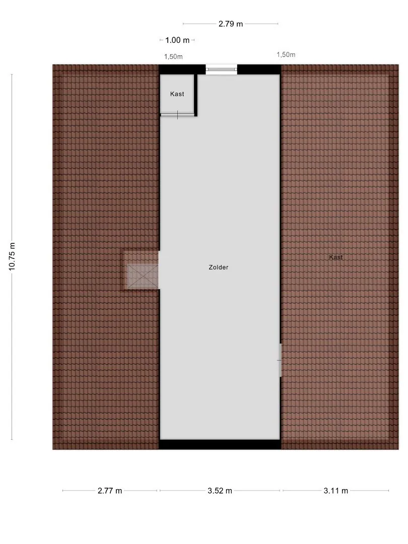 Via een luik in de garage is de zolder ook toegankelijk, welke dankzij de ruime oppervlakte nog functioneel kan benut worden.