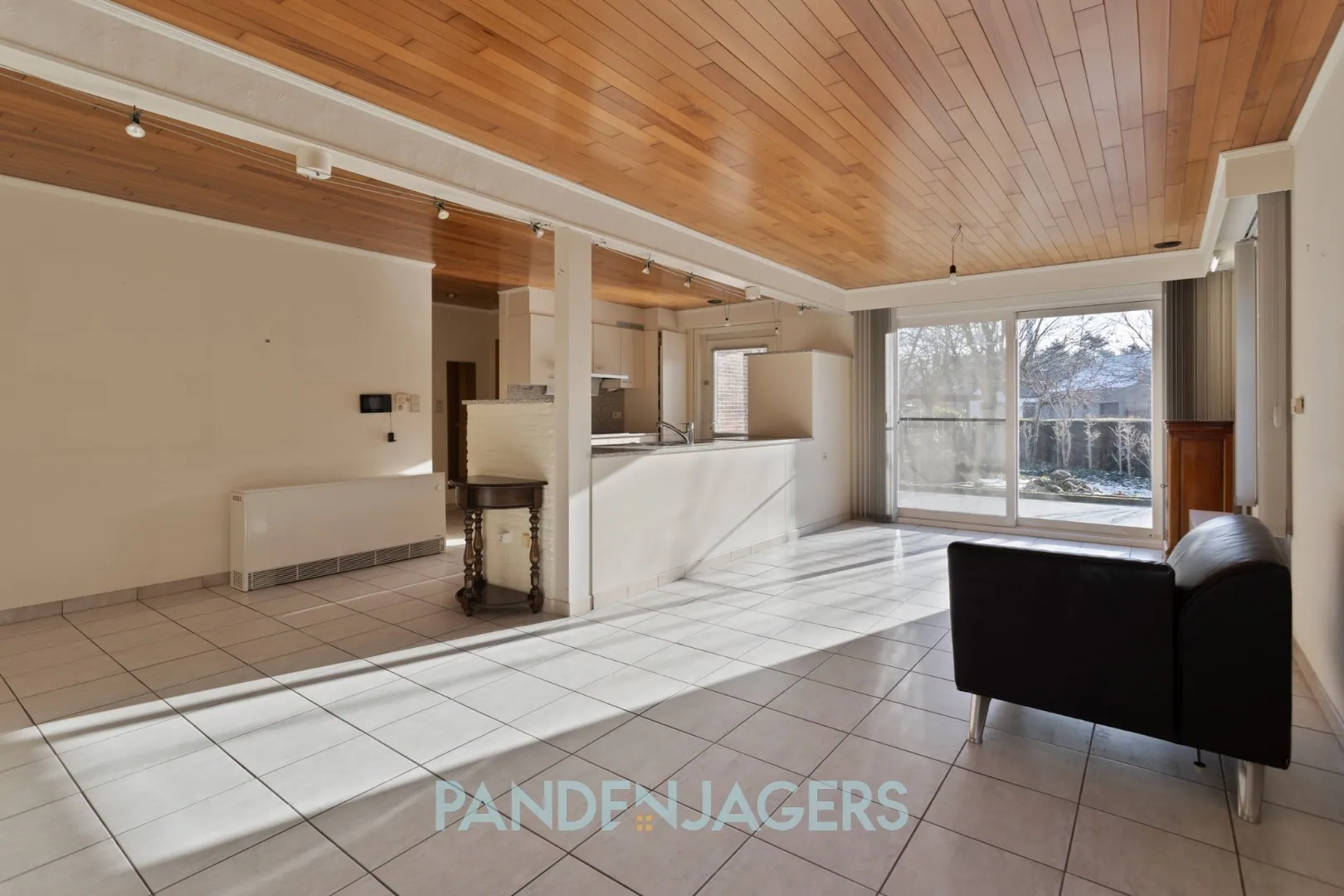 De woning heeft een functionele inkomhal met vestiairekast en gastentoilet. Centraal in de woning is er de woonkamer met bijhorende open keuken. Kenmerkend is het vele lichtinval, dankzij de vele ramen, en het prachtige zicht op het Muggenbergpark. Het gelijkvloers is voorzien van 2 slaapkamers en een badkamer met bad en toilet. Er is een ruime garage met afzonderlijke wasruimte.