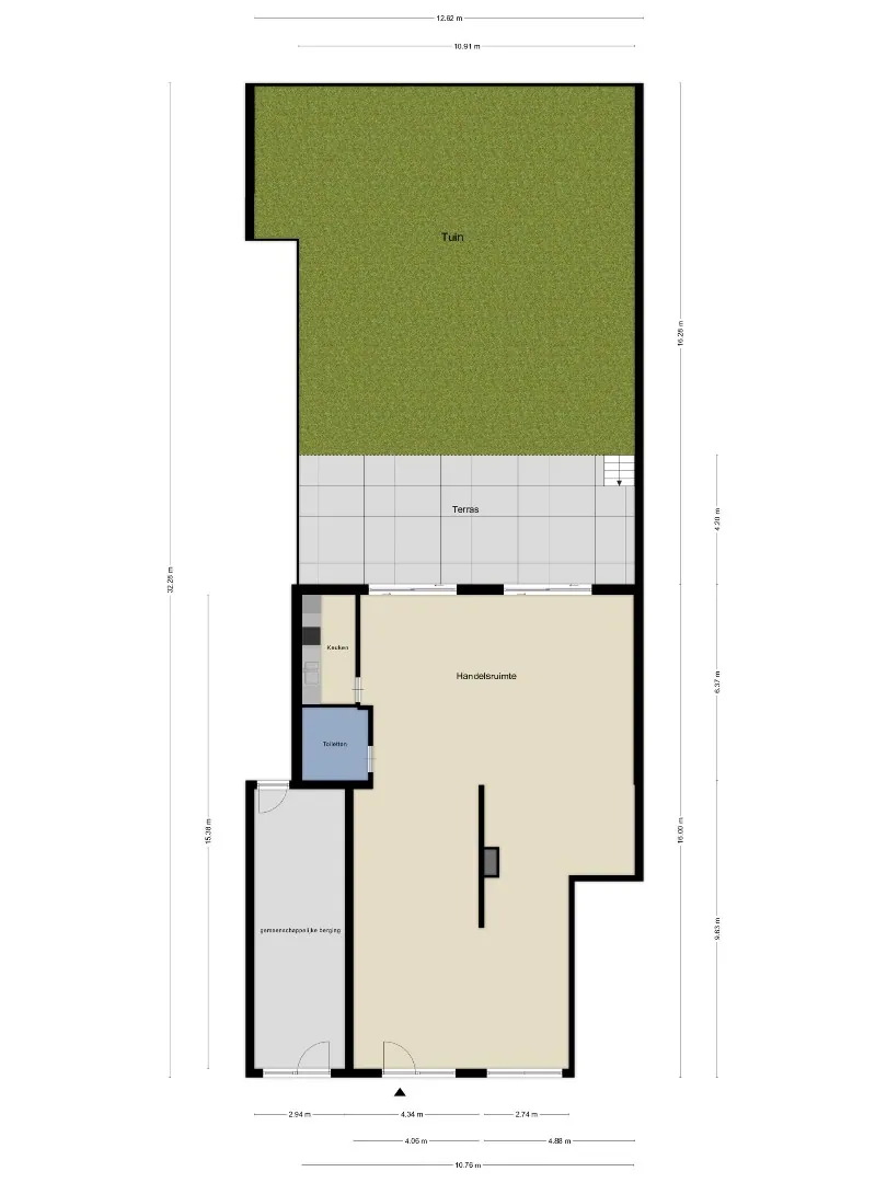 Het pand beschikt over een ruime, open handelsruimte met privékeuken, twee toiletten en een privatieve kelder die extra bergruimte biedt. Een absolute troef is de uitzonderlijk grote zuidgerichte tuin met ruim zonneterras, wat dit pand uniek maakt voor een commerciële ruimte op zo’n centrale locatie.
