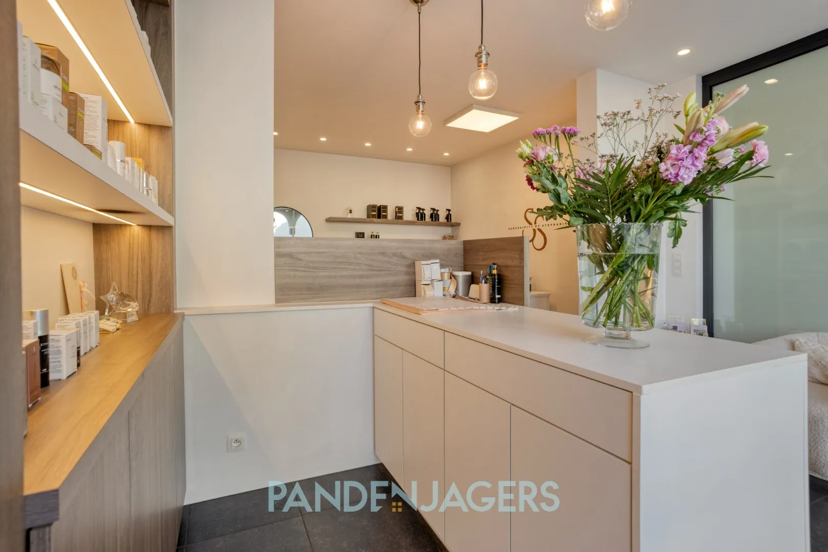Op zoek naar een stijlvol en professioneel ingericht handelspand? Dit volledig gerenoveerde pand (2018) met hoogwaardige materialen en maatwerk schrijnwerkerij is momenteel ingericht als schoonheidssalon en kan perfect zo worden overgenomen.