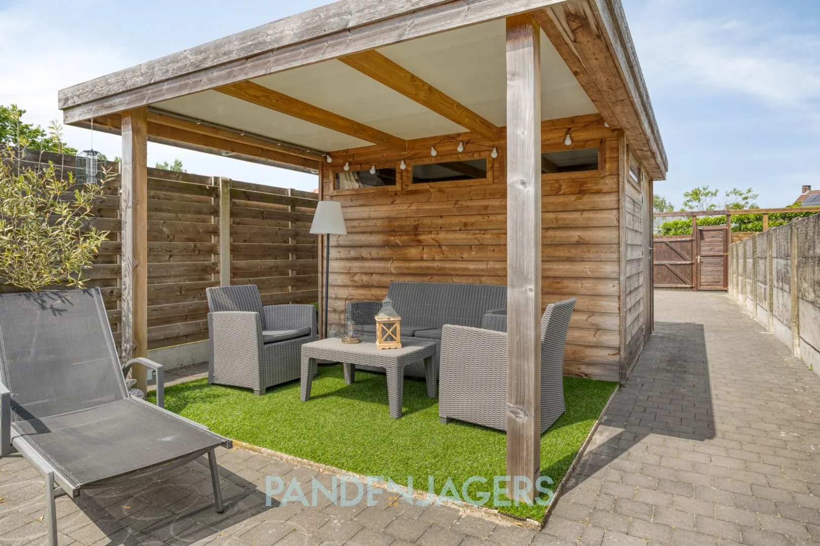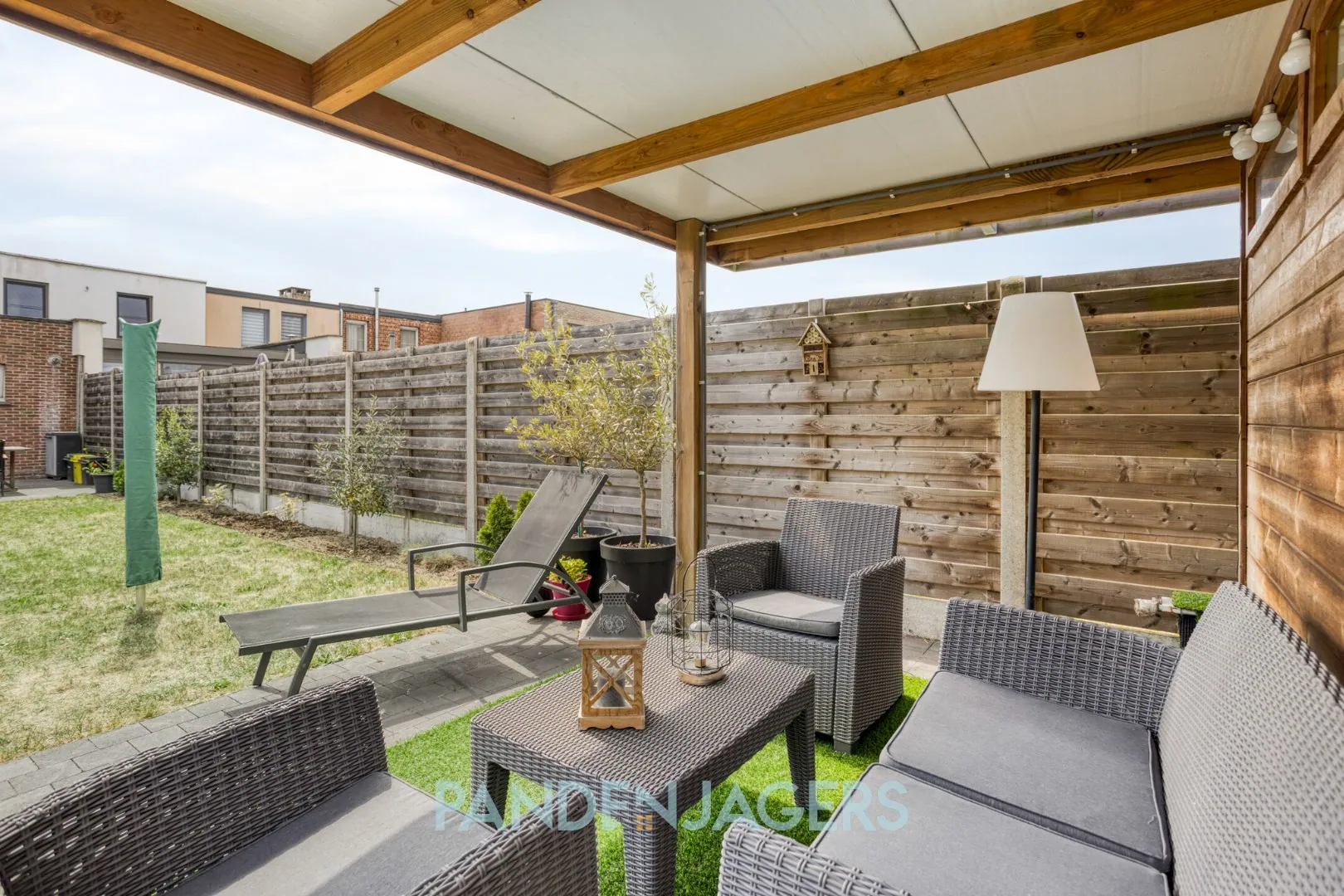 Buiten is er een aangename tuin met als eyecatcher het mooie houten tuinhuis met overkapping. Dit is de perfecte plek om tot rust te komen en om er te genieten van een drankje in de loungeset. Een andere grote troef is het feit dat er een achteruitgang is, waardoor de fietsen veilig opgeborgen kunnen worden.